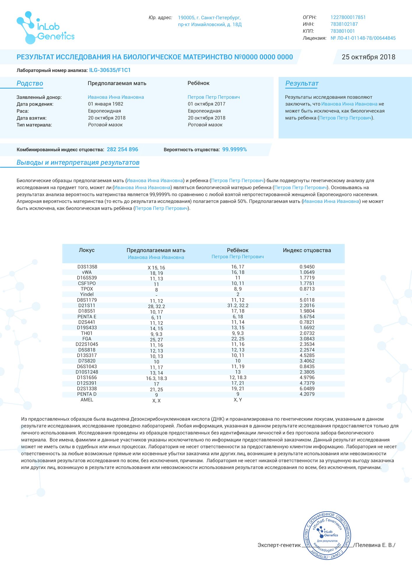 +7 (812) 426-19-14В каких случаях проводят ДНК-анализ на установление материнства